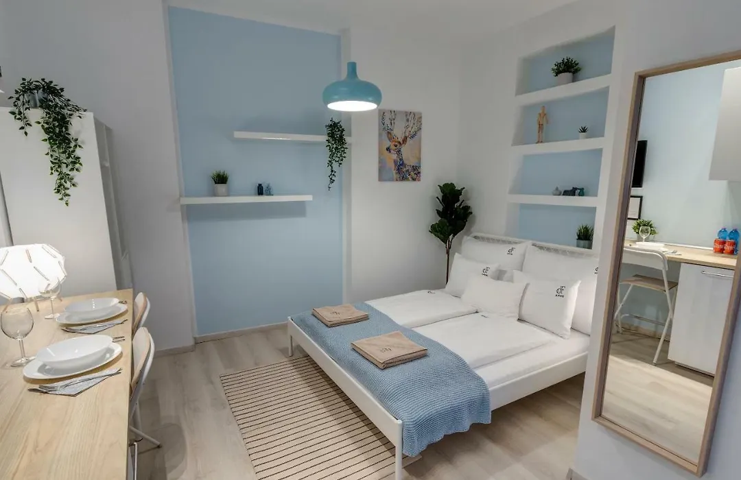 El d.Five City Studio Régi Posta Budapest está situado a tan solo 5 minutos a pie de la Estatua de la Pequeña Princesa y a 25 km del aeropuerto Budapest-Ferenc Liszt.